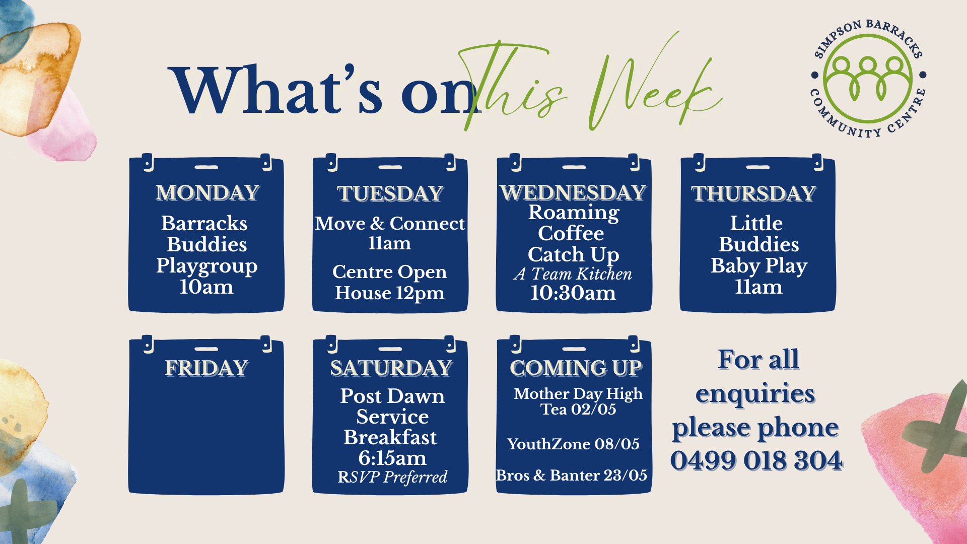 From playgroups and coffee catch-ups to craft sessions, book clubs, and special celebrations - there’s always something happening at SBCC. Our events are designed to bring Defence families together, spark new friendships, and strengthen the sense of belonging that makes our community so special. Explore what’s coming up and be part of the connection.